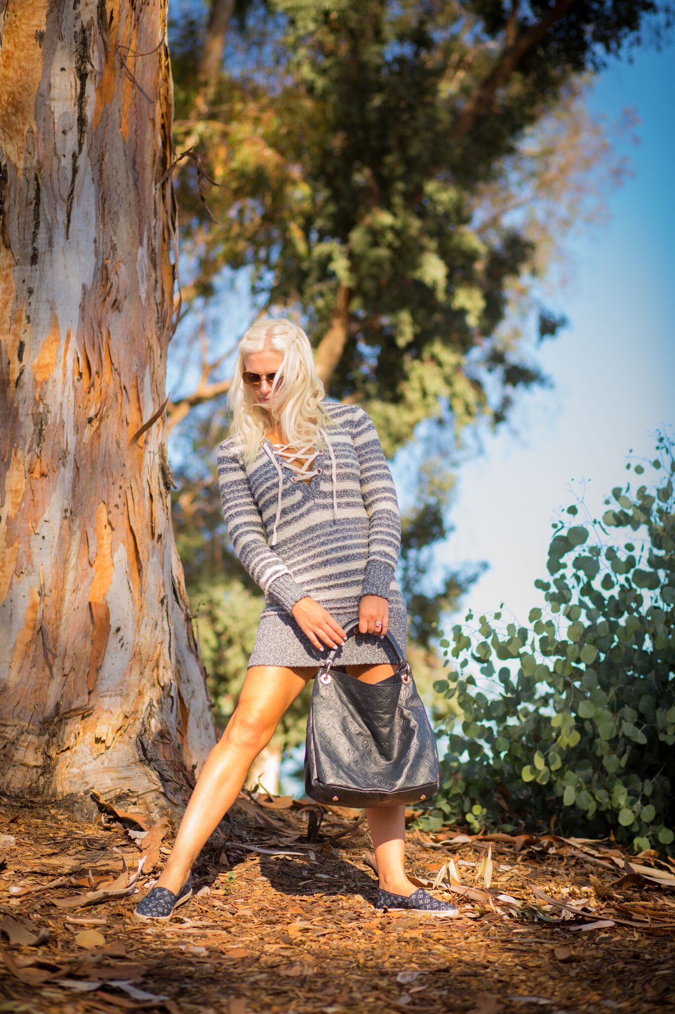 I figure I can get great use of my super cozy nautical outfit until November. Heck I can even pair it with a solid red shawl or creamy sweater. The “off white” creaminess definitely gives the sweater a fall appearance. And my bag is big enough to fit my sweater or shawl. 🙂