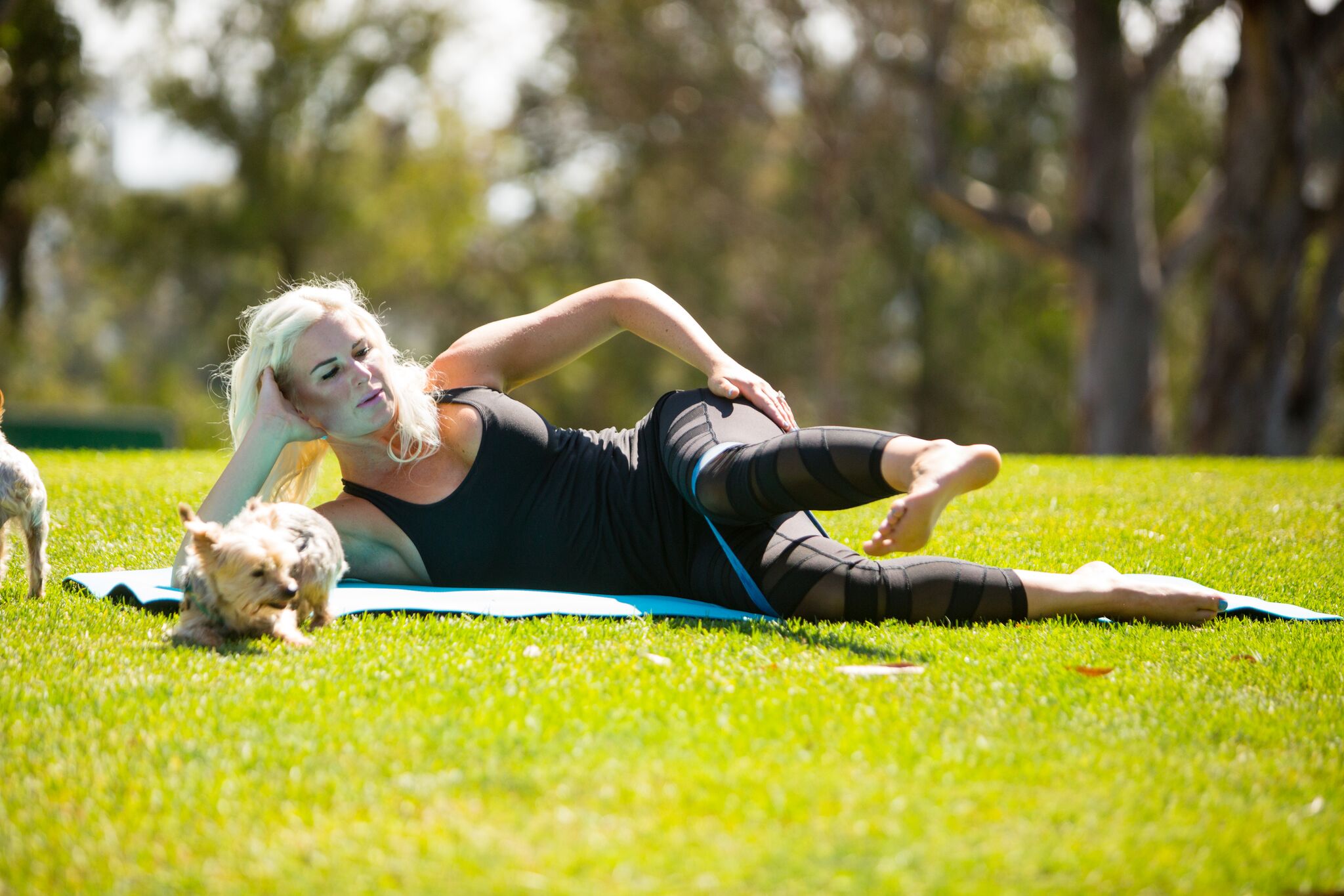 Keep in mind you want a strong core holding you up on your side with ribs and hips stacked evenly! Pull that belly button in nice and tight as you move your top leg around. Try keeping your spine completely still… all of the work should be done from the hip down. Balance comes from maintaining your position and stillness through the upper body!